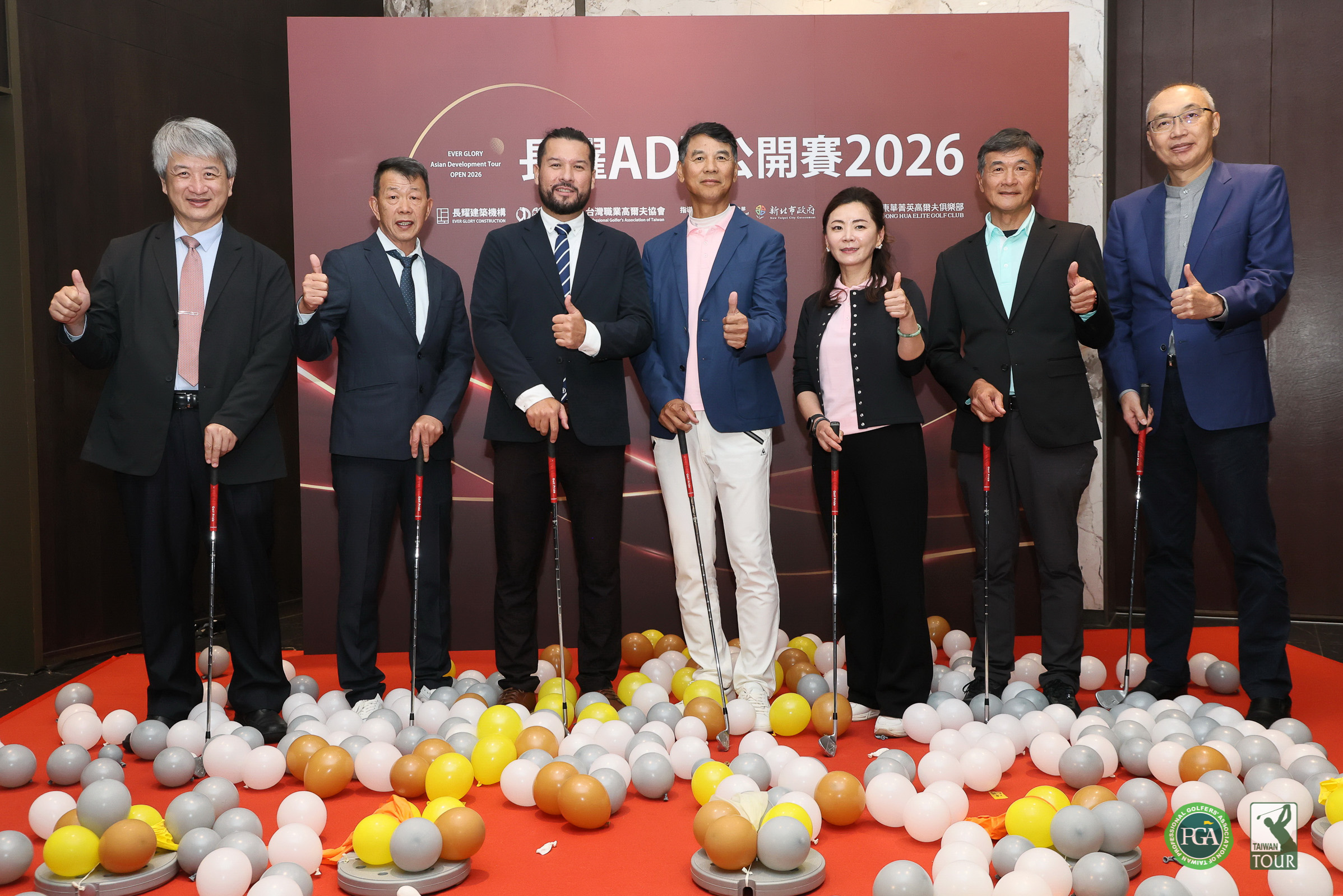 Ever Glory Construction Chairman Hsieh Chien-kuo, together with the three representatives and other distinguished guests—including Chen Jung-mao, Associate General Manager of Tong Hwa Golf & Country Club, Wu Yao-ming, Director of the NTU Cancer Center at the College of Medicine, National Taiwan University, and Hsieh Cheng-ta, Secretary-General of the New Taipei City Industrial and Commercial Development Advisory Committee—also jointly conducted the launch ceremony for the “2026 Ever Glory ADT Open.”