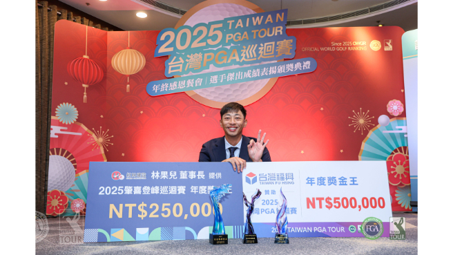This marks Wang Wei-hsuan’s second time earning both the Taiwan Tour Money Leader and Player of the Year titles since first sweeping all major honors in 2020, including Taiwan Tour Money Leader, ThreeBond Challenge Tour Money Leader, Player of the Year, and Rookie of the Year.