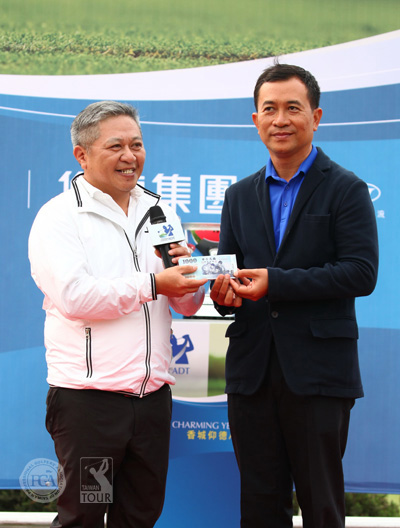 香城仰德ADT泰國帕維延長賽奪冠,香城飯店集團董事長邱忠賢(左)頒發冠軍支票
