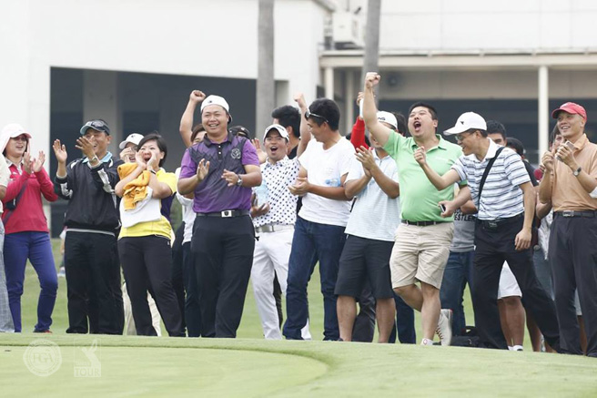 林文堂前三洞延長賽都平手,場邊觀眾興奮地拍手叫好