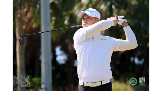 總獎金台幣150萬元的2024 ThreeBond TPGA挑戰巡迴賽封關站-T. C. Chen菁英挑戰賽,今天(27日)在美麗華高爾夫鄉村俱樂部開打,蕭和宇打出低於標準桿一桿的71桿,暫時領先群雄,也是首回合唯一打出紅字的球員。