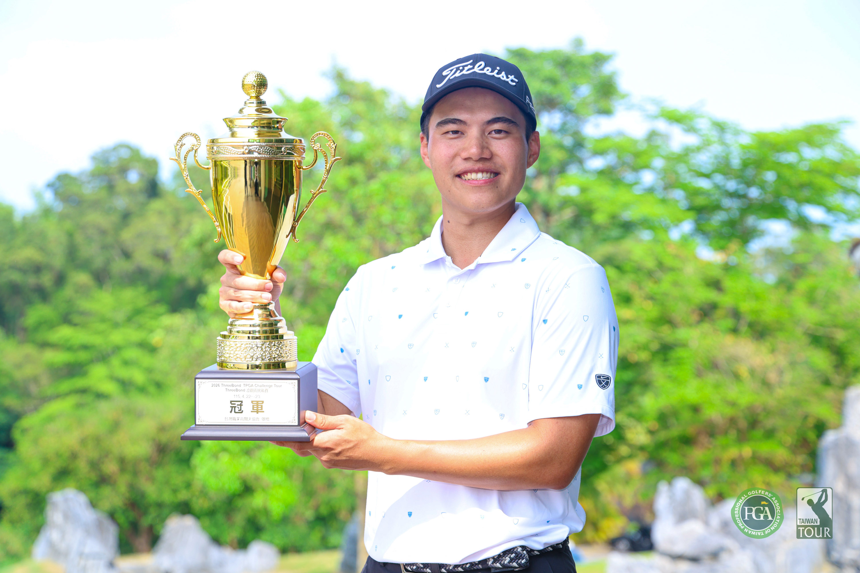 The second event of the 2026 ThreeBond Challenge Tour, the Cheng Guan Yuan Challenge, concluded today (April 23) at Takangshan Golf Club in Kaohsiung. In a tightly contested battle for the title, Chen Ting-yu delivered a steady performance, carding a 1-under-par 71 for a two-round total of 5-under-par 139 to claim his first professional victory and the winner’s prize of NT$150,000. He also became the first left-handed player to win a professional event on the ThreeBond Challenge Tour in Taiwan. Yang Hao fired a 70, while Lin Da-yu posted a 71. Both players finished at 4-under-par 140 over two rounds, tying for second place, one stroke behind the champion, and each earned NT$62,500 in prize money. Chen Wei-sheng shot a 68 to claim the low round of the day and received a NT$15,000 bonus sponsored by Lions Clubs International District 300E1 Governor Huang Ming-tsung. He finished tied for 22nd place with a two-round total of 148. In the amateur division, You Hong-yu, trained at National Golf Country Club, carded a 69 for a two-round total of 160 to win the amateur title. He also tied for 38th place in the professional standings and received additional prizes, including five dozen SRIXON Z-STAR DIAMOND golf balls sponsored by DUNLOP Taiwan and an OMNIX golf bag sponsored by Omnix International Co., Ltd. Chen Ting-yu expressed his excitement after securing his first professional win, saying he did not expect to achieve it so soon. He noted that he had struggled before 2024 and only regained his form early last year. He thanked his family for their support, his coaches Tsai Ting-hung and Huang Kuo-lun for their guidance, the training support from Yang Sheng Golf Club, and his girlfriend for standing by him throughout his journey. Chen, who turned professional in May last year, began the final round tied at 4-under-par with Wang Shih-jui. After the front nine, he had built a two-stroke lead. Lin Da-yu, one of his main challengers, started in the final group one stroke behind. After 16 holes, Lin recorded two birdies and three bogeys, while Chen had three birdies and three bogeys, maintaining a two-shot lead. Lin made a remarkable eagle with a 40-foot putt on the par-5 17th hole, but Chen responded with a birdie on the same hole to retain a one-shot lead. Both players made par on the 18th hole, allowing Chen to secure victory by a single stroke. Meanwhile, Yang Hao, who started two shots behind, reached 4-under-par after 15 holes, trailing Chen by just one stroke, and caught up on the 16th hole. However, he failed to make another birdie over the final three holes, particularly on the par-5 17th, and was unable to tie or overtake the lead. He finished with five birdies and three bogeys for a round of 70, ending tied for second, one stroke back. Chen credited his victory to a steady strategy and consistent performance with his woods, along with maintaining a composed mindset despite some nervousness. A key moment came on the 365-yard par-4 15th hole, where he drove into a left bunker with a 5-iron, then hit a 9-iron onto the green, leaving a 3-foot putt which he converted for birdie to maintain a one-shot lead. Although he made a bogey on the 16th, he bounced back with a birdie on the 17th. On the 18th, his first putt from nearly 40 feet stopped within one foot of the hole, securing a par and ultimately the victory. Chen began playing golf at the age of 10 under his father’s guidance and decided in his first year of junior high school to pursue the sport professionally. Now 24, he aims to win more titles in the future. His goals for this season include finishing among the top three in the Challenge Tour money list and placing in the top 10 in every Taiwan Tour event. He also plans to enter qualifying schools for the China Tour and the Asian Tour in the second half of the year. This week’s tournament marked the second event of the 2026 ThreeBond Challenge Tour season, with a total purse of NT$1 million. It was the ninth consecutive year that the Pai Wei Group (Cheng Guan Yuan Driving Range) has served as the title sponsor of this event. The tournament was co-organized by The PGA of Taiwan (TPGA) and ThreeBond Co., Ltd., with Takangshan Golf Club as the co-host venue. The competition was played over 36 holes across two rounds with no cut. A total of 90 professional players (including one from South Africa) and six amateurs competed for the championship trophy and NT$150,000 winner’s prize. Three companies sponsored hole-in-one prizes of NT$100,000 each. As no player achieved a hole-in-one during the tournament, Wu Ji Pastry Shop, Zeli Industrial Co., and Yilida Resource Technology Co., Ltd. each donated their prize funds to the TPGA as a development fund for promoting golf. During the tournament, Cheng Guan Yuan Driving Range provided free practice for participants, as well as a buffet on the day of the awards ceremony. Additionally, the century-old pastry brand Chiu Chen Nan sponsored gifts for VIP guests, and Chairman Cheng Yang-ching of Jing Dian Development provided snacks for players in each round. ThreeBond, a Japanese multinational company specializing in industrial adhesives, has been the title sponsor of the TPGA Challenge Tour for 12 consecutive years. The 2026 ThreeBond TPGA Challenge Tour will continue to feature nine events this season.