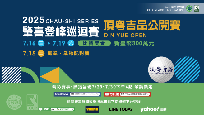 The CHAU-SHI Series is title-sponsored by Mercuries Group Honorary Chairman Wong Chau-shi and has been held annually since 2021; this marks its fifth consecutive year. The Din Yue Open is co-organized with TPGA and hosted by Taifong Golf Club.
