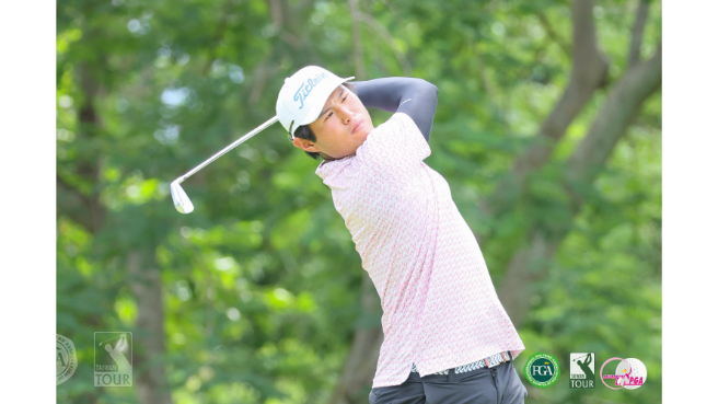 Chen Yi-tung posted eight birdies and one bogey today. He said his driver was steady, missing the fairway on only four holes, while his irons remained sharp, hitting 15 greens in regulation. Several approaches left him within 3 to 6 feet, creating numerous birdie opportunities. “The front nine was relatively easier, so I capitalized with five birdies for a 31,” Chen explained. “The back nine was tougher, but I still made three birdies and one bogey. At the 11th, I stuck my second shot to within a foot for an easy birdie. On 18, my drive landed in the right rough under a tree, on a slope and an old divot, but I still had an angle to the green. I hit it to 8 feet and drained the putt for a brilliant birdie.” He totaled just 27 putts for the round.