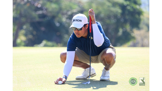 The outright leader Tawit Polthai recorded seven birdies and two bogeys today. Starting from the second hole, his iron play was not ideal over the opening eight holes, where he made three birdies and two bogeys. On the back nine, he improved his greens-in-regulation performance and created more birdie chances by hitting approaches closer to the hole, adding four birdies with no bogeys. He made three consecutive birdies from holes 13 through 15, highlighted by a 30-foot birdie putt on the par-3 13th. His other birdies came mostly from around 15 feet. His driving was acceptable, and putting was the strongest part of his game, while his iron play left room for improvement.